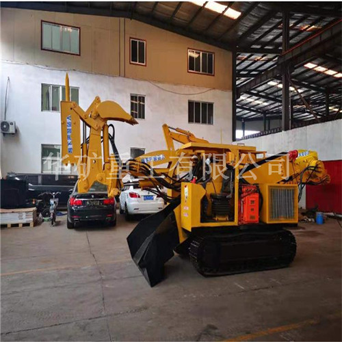 WPZ-45/450煤礦巷道修復機集裝載、破碎、行走于一體,具有多功能的設備,主要用于巷道受壓變形后修復,特別是對巖石底板、起鼓、側幫水溝的挖掘、起到很大作用。實現擴幫、挑頂、起底機械化施工,大臂可以旋轉360°,也可以大臂下降落地,扒皮帶下面落地煤。同時配備了沖擊錘、鏟斗快拆裝置,在井下可以短時間內實現的功能轉換。