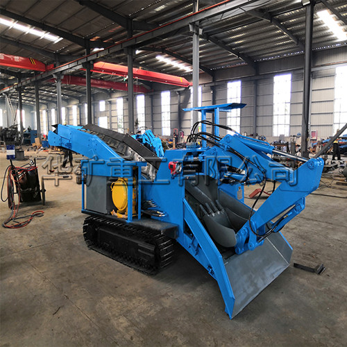 礦用挖掘式裝載機又稱扒渣機,坑道清理機,坑道出渣機。按照行走方式分為輪式和履帶式。它是及液壓行走,挖掘裝置,皮帶輸送,裝車,清理巷道底部五種功能。主要由電動機,液壓行走,挖掘裝置,行走裝置,皮帶輸送卸料和電器控制系統等部分組成。整車液壓系統由一臺15kw電動機為動力帶動齒輪泵,液壓油經油箱到多路閥到執行動作元件再回到油箱,通過多路閥的四個手柄完成對液壓裝置的控制。