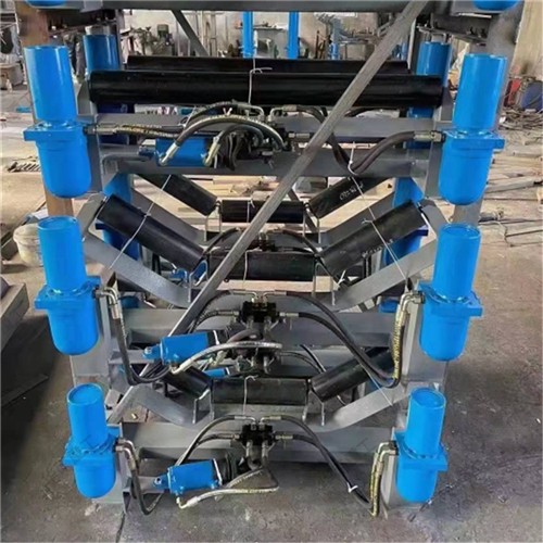 皮帶糾偏裝置能夠自動(dòng)檢測(cè)皮帶跑偏并予以調(diào)整,使皮帶始終運(yùn)行在設(shè)定的范圍之內(nèi)。 使用全自動(dòng)液壓糾偏裝置能夠消除皮帶機(jī)因安裝不準(zhǔn)、運(yùn)轉(zhuǎn)不靈、物料沖擊、負(fù)荷變化、皮 帶斷面間伸長(zhǎng)率不均等因素造成的皮帶跑偏。 液壓糾偏裝置不需電源、自動(dòng)調(diào)整、結(jié)構(gòu)簡(jiǎn)單、性能可靠、安裝方便。可以在任何惡劣 環(huán)境下工作:不怕水、不怕粉塵、不怕物料撞擊,不損傷皮帶。液壓糾偏裝置是由檢驅(qū)輪、油泵、復(fù)合油缸、油管總成、固定機(jī)架構(gòu)成。當(dāng)皮帶運(yùn)行跑 偏時(shí),皮帶與檢驅(qū)輪接觸,檢驅(qū)輪帶動(dòng)油泵旋轉(zhuǎn),輸出壓力油控制驅(qū)動(dòng)油缸往復(fù)運(yùn)動(dòng),帶動(dòng) 調(diào)心托輥偏轉(zhuǎn),使調(diào)心托輥的線運(yùn)動(dòng)方向與皮帶的運(yùn)動(dòng)方向形成一個(gè)夾角,產(chǎn)生的摩擦力驅(qū) 動(dòng)皮帶,使皮帶始終在設(shè)定的范圍內(nèi)運(yùn)行,從而避免皮帶跑偏造成散料及皮帶與皮帶機(jī)機(jī)架 摩擦撕帶,達(dá)到保護(hù)皮帶機(jī)正常運(yùn)行之目的。