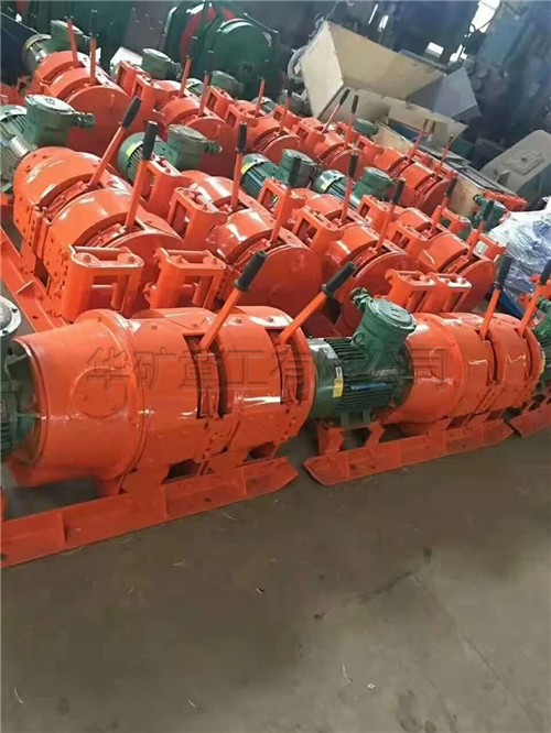 耙礦絞車主要用于金屬礦及其它礦場的坑內或露天做礦石搬運及充填工作。主要用于水平耙運,也可用于傾角不大的斜坡耙運,不能作為提升設備。司機可以在絞車旁用手操縱,也可以離絞車數米以至數十米處用按鈕實行距離操縱。耙礦絞車由纏繞在卷筒上的鋼絲繩牽引耙斗作往返運動來耙運物料。耙礦絞車由絞車,耙斗,滑輪三大主要部分組成。