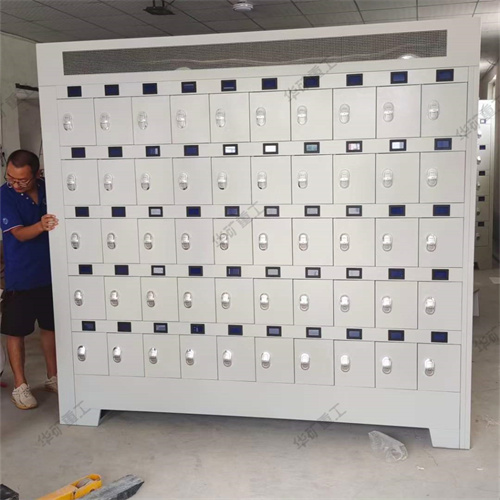 該充電柜簡潔美觀大方、經濟實用、藍色柜門屏可以顯示使用者的單位、名稱、取放燈時間等,且實現了智能管理,做到了集礦燈智能化管理、自救器管理、便攜儀管理、編碼定位器管理、無人值守、智能自動考勤、遠程控制等多項功能于一體。