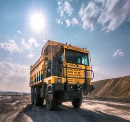 參與作業生產的新款無人礦用卡車長8.7m,高4m,滿載負荷為90噸,滿載穩定時速20km/h。