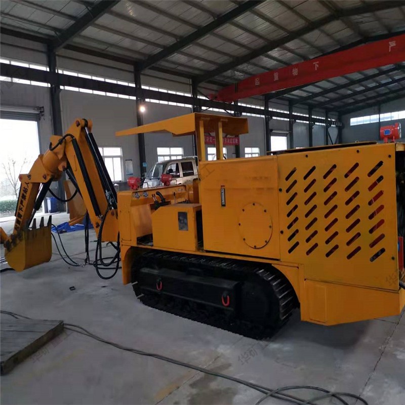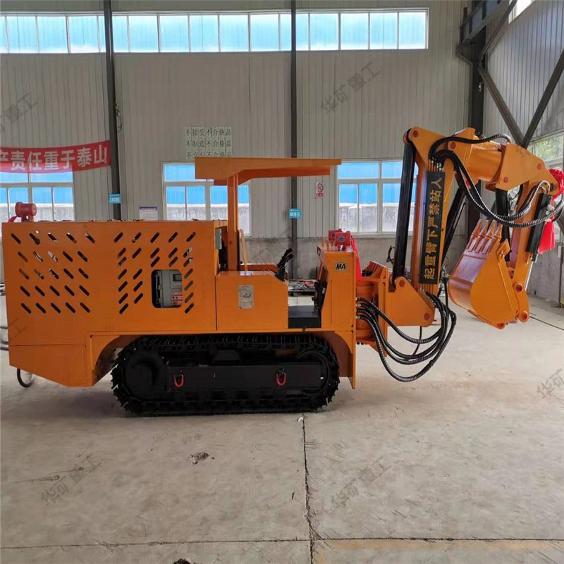 煤礦巷道修復機集裝載、破碎、行走于一體,具有多功能的設備,主要用于巷道受壓變形后修復,特別是對巖石底板、起鼓、側幫水溝的挖掘、起到很大作用。實現擴幫、挑頂、起底機械化施工,大臂可以旋轉360度,也可以大臂下降落地,扒皮帶下面落地煤。同時配備了沖擊錘、鏟斗快拆裝置,在井下可以短時間內實現的功能轉換。煤礦用巷道修復機主要用于煤巷及半煤巖巷、全巖巷巷道的頂板、底板及側幫的日常維護作業,也可以根據需要快速更換破碎錘,對大塊的巖石、煤塊進行破碎,便于裝運。該機工作大臂可以左右擺動45度,大臂也可以旋轉度;,同時配有前推鏟,可以滿足上頂板挖掘,側邦挖掘和下部挖掘、破巖、裝車、起吊等各項動作要求,實現挖掘毛水溝、臥底、破巖、清理浮煤、清理皮帶機底部、平整巷道及小型配件吊裝等多種功能作業,并具有體積小,機動靈活、安全高效等特點。