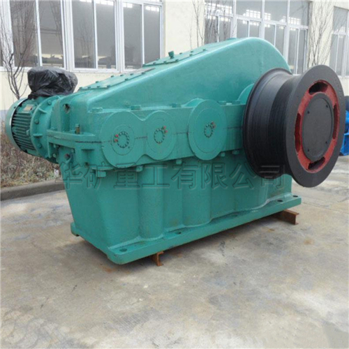 調車絞車適用于煤礦、選煤廠、電廠、冶金礦場、鋼鐵廠、水泥廠、港口等場所調度列車之用。該絞車為無機繩摩擦式傳動,與導向輪、托滾、壓滾、滑車等輔機配套組成列車系統。調車絞車系統可以實現正反雙向重載牽車。絞車由電動機、聯軸器、制動器、減速器以及摩擦輪等幾部件分組成。電機采用變頻電機,配以變頻電控柜,可以實現無機變速,重載時采用低速恒扭矩啟動、頻率在5~50H范圍內可調,空載時采用高速恒功率運行、使絞車運行速度快、效率高、頻率在50~80Hz范圍內可調。減速器采用雙圓弧齒輪傳動,具有傳動比大、體積小、傳動效率高、噪音低、承載能力強等優點。電機與減速器之間采用帶制動輪的聯軸器,制動器為手動、自動2用,使制動更安全可靠。摩擦輪采用高牌號鑄鋼件,機械強度高、耐磨性能好、使用壽命長。摩擦輪與減速器輸出軸采用脹套聯系,安裝拆卸方便。絞車主機用鋼絲繩與輔機連成牽車系統,輔機包括導向輪、壓滾、托輪、滑車、支持輪、重垂、重垂架等配件。鋼絲繩在主機摩擦輪上纏繞四圈后穿過導向輪、壓滾、滑車,兩頭固定。托滾放置在鋼絲繩下方起襯托作用,重垂通過支架輪將滑車張緊,使鋼絲繩始終有一定的張緊力,保證鋼絲繩在摸查輪上產生足夠大的摩擦力,以拉動整列車火車。整個工作過程如下∶電機啟動、驅動減速器、使摩擦輪傳動,通過摩擦力使鋼絲繩運動。改變電機的轉動方向將改變列車的運動方向,一達到調運列車的需要調車絞車分為單摩擦輪調車絞車 雙摩擦輪調車絞車及四摩擦輪調車絞車又分為裸露摩擦輪和隱藏摩擦輪。就安全因素而言,隱藏式摩擦輪結構更為安全