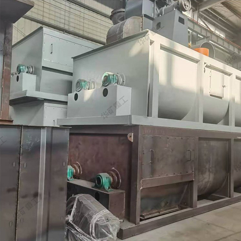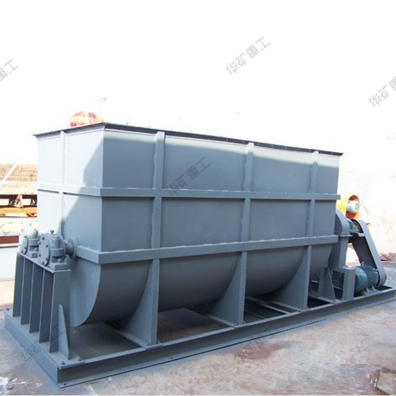 本機主要是采用由回轉運動代替攪拌的化灰方法。化灰機內筒后部開有篩孔,石灰塊同水在內筒接觸消化,石灰乳穿過篩孔折流向加料口方向自下部排出口流出,未能消化的過燒及生燒石灰由外筒體尾部的撈渣裝置排出筒外。