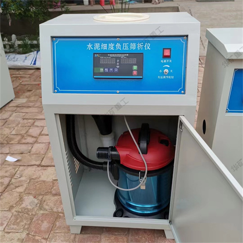 數字式水泥細度負壓篩析儀利用氣流作為篩分的動力介質,工作時,整個系統保持負壓狀態,篩網力的待測精粉末物料在旋轉的噴氣嘴噴出的氣流作用下呈流狀態、并隨氣流一起運動,其中粒徑小于篩網孔徑的細顆粒由氣流帶動通過篩網被抽走,而粒徑大于篩網孔徑的粗顆粒則留在篩網里從而達到篩分的目的。若篩分系統中聯用一只小型旋風收塵筒,則可把通過篩網的細顆粒從氣流收集,收集率可達90%以上,從而減少了吸塵器清灰次數。