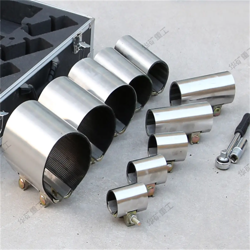 金屬堵漏套管是搶險堵漏的專用器材,具有管徑適應范圍廣,堵漏面積大,安裝便捷,能重復使用,密封性能優良,耐震動等特點。適用范圍:適用管道直徑:12~100mm2、堵漏壓力:0.2~0.5Mpa3、耐老化、耐油、耐弱酸弱堿,適用溫度:-20~100℃4、用途:油、水、天然氣、管線本工具結構簡單、堵漏方便,它是消防部隊和其它應急救援部門處置管道泄漏事故的重要工具。它由十種規格的金屬堵漏套、膠墊和專業扳手等工具組成。