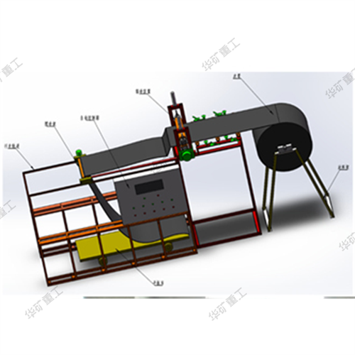 煤礦井下使用的鋼絲繩皮帶在更換時,需要在地面將成卷的皮帶疊放于平板車上,以便運輸和下井。每卷皮帶重10噸以上,人工疊帶不僅耗費大量的人力,而且疊帶效率低,同時存在較大的安全隱患。