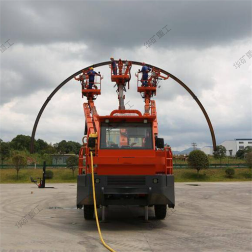 多功能礦山隧道拱架安裝臺車配置了兩條或三條機械臂,以及兩個或三個工作平臺,使得工人在臺車的操作范圍內可以遠離掌子面,避免了在危險的環境中進行作業的風險,大大提高了作業的安全性。同時,機械臂和工作平臺的配合使用,還可以實現更加精準和穩定的安裝作業,減少了由于人為操作失誤而引發的安全事故。