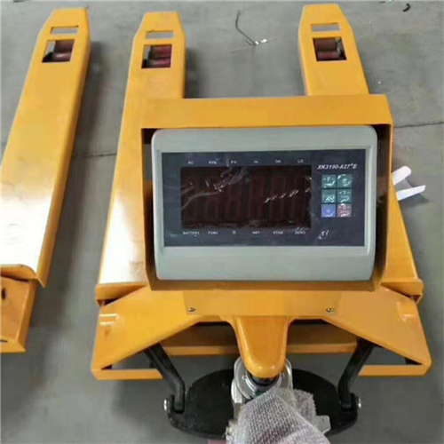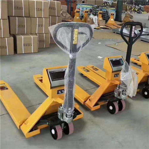 帶秤重液壓搬運車電子秤搬運車是指在手動液壓升降搬運車基礎上增加高精度秤重傳感器和智能化數字顯示儀表而組成的秤重系統,電子叉車秤實現了貨物搬運和秤重同步進行,每次秤重的數據可以自動顯示,是本公司在豐富的