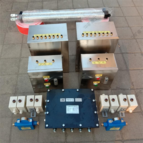 本裝置由1臺ZMK127-Z礦用風門電控裝置主機、4臺FHF10礦用本安型紅外發送器、4臺FHS10礦用本安型紅外接收器、2臺GFK60礦用風門開閉狀態傳感器、2臺KXB127礦用隔爆兼本安型語言報警器和2臺DFB-8-DH-1.0礦用隔爆型電磁閥組成。