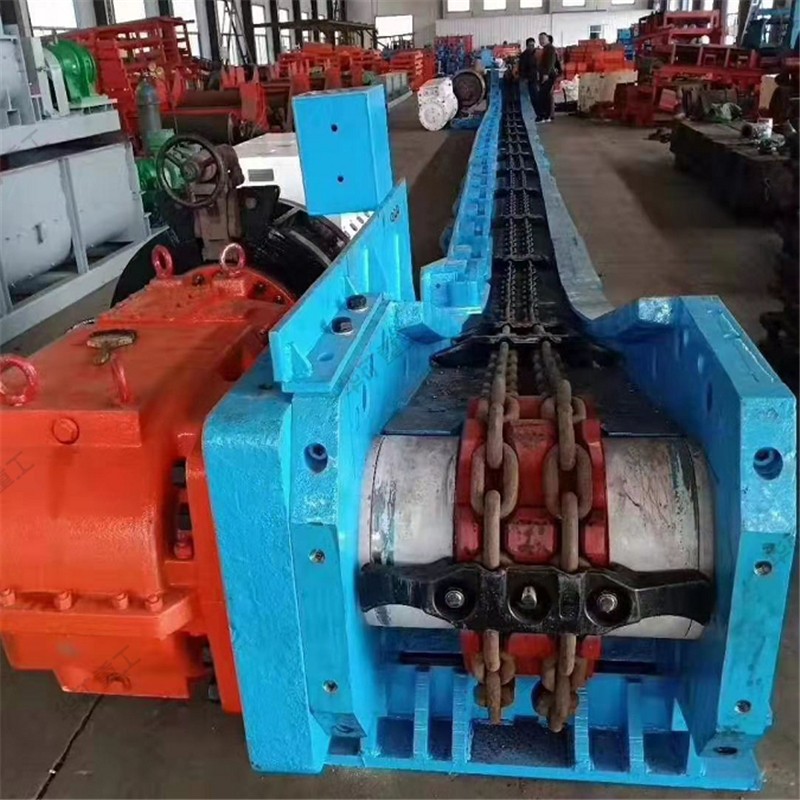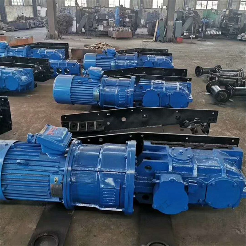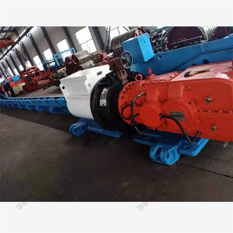 用刮板鏈牽引,在槽內運送散料的輸送機叫刮板輸送機。它由機頭、中間部和機尾部等三個部分組成。此外,還有供推移輸送機用的液壓千斤頂裝置和緊鏈時用的緊鏈器等附屬部件。機頭部由機頭架、電動機、液力偶合器、減速器及鏈輪等件組成。中部由過渡槽、中部槽、鏈條和刮板等件組成。機尾部是供刮板鏈返回的裝置。