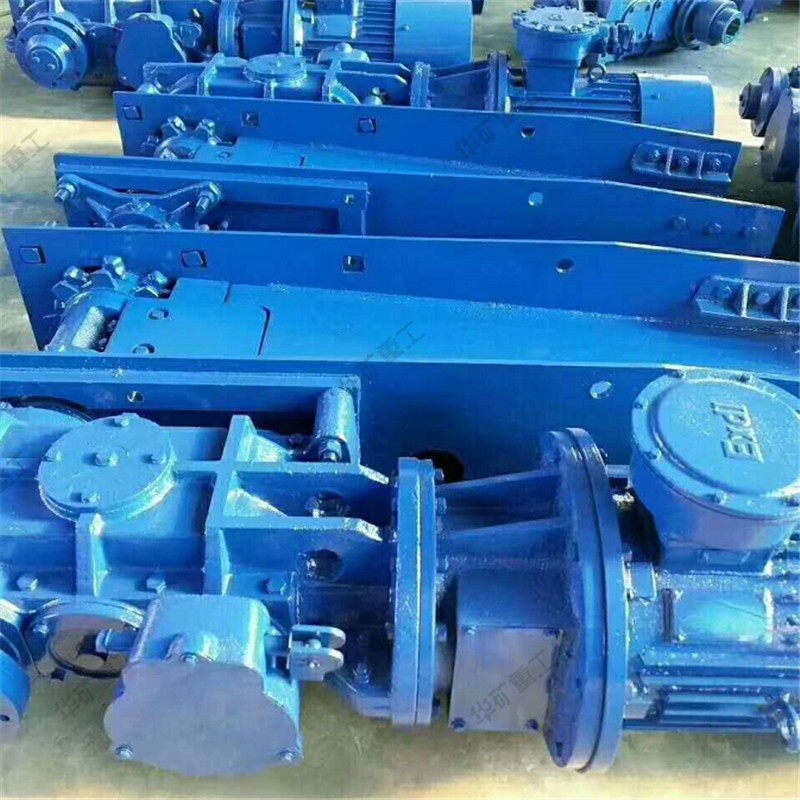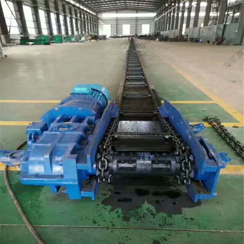 將敞開的溜槽,作為煤炭、矸石或物料等的承受件,將刮板固定在鏈條上(組成刮板鏈),作為牽引構件。當機頭傳動部啟動后,帶動機頭軸上的鏈輪旋轉,使刮板鏈循環運行帶動物料沿著溜槽移動,直至到機頭部卸載。刮板鏈繞過鏈輪作無級閉合循環運行,完成物料的輸送。